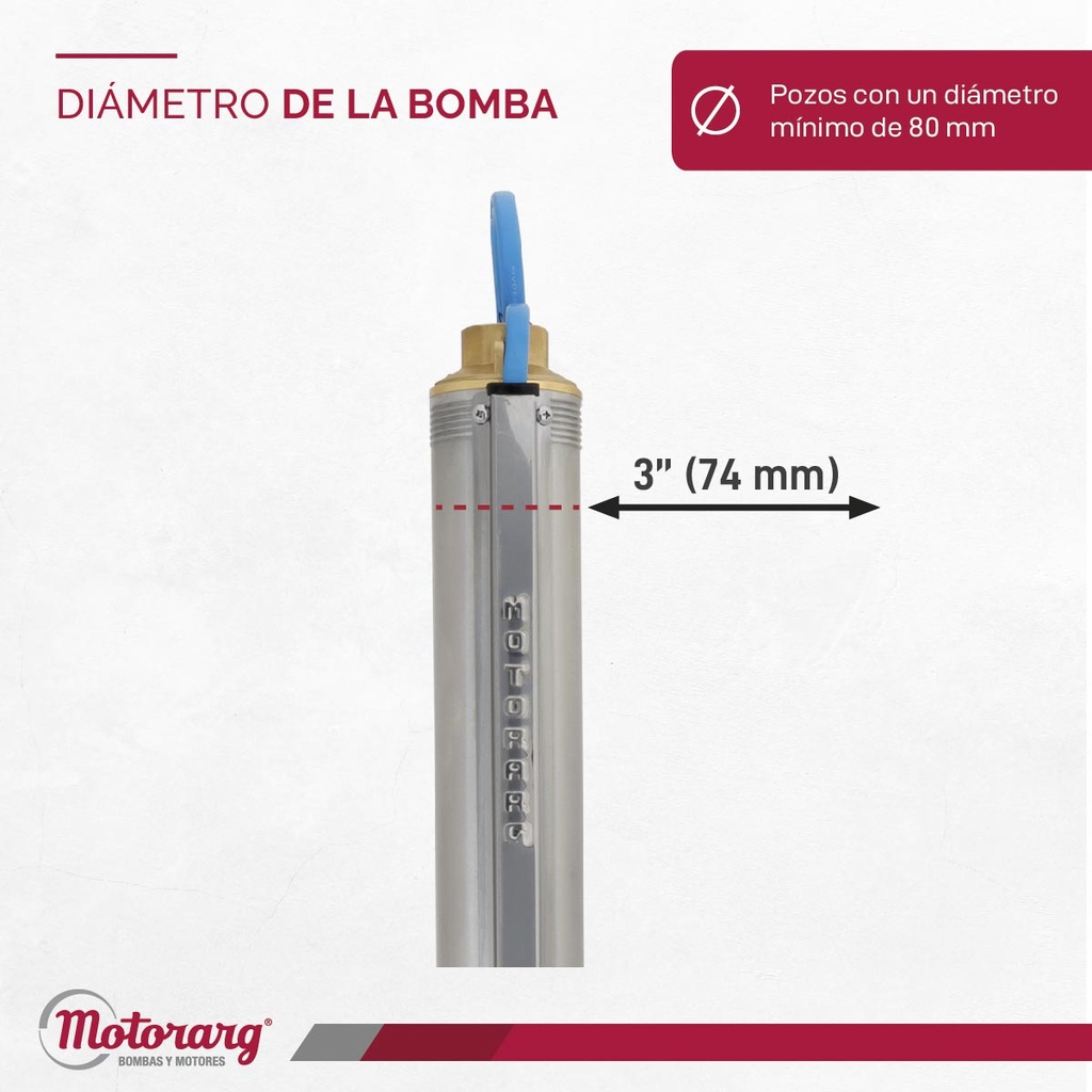 BOMBA SUMERGIBLE DE POZO MOTORARG 3 PULGADAS MODELO MICRA 305X/0.75-2A DE ARRANQUE DIRECTO - 0,75 HP - 40 MTS - 220V
