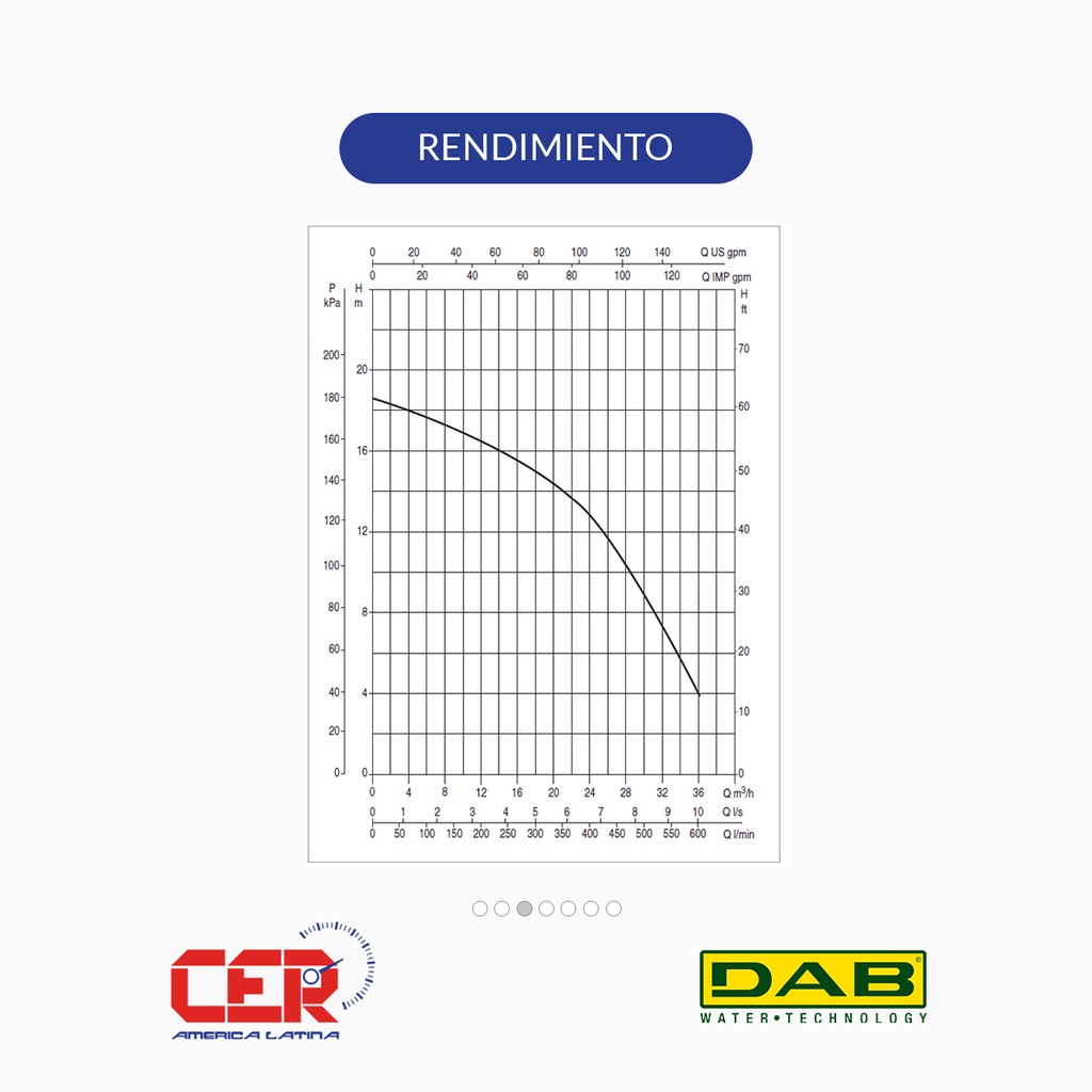 • Altura máxima de elevación: 18,6 metros (1,8 bar).