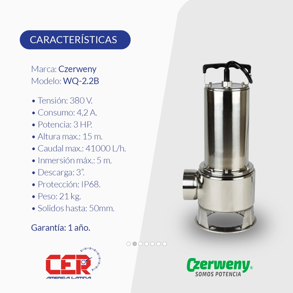 BOMBA SUMERGIBLE DE DRENAJE CLOACAL CZERWENY MODELO WQ-2.2B - 3 HP - 380V